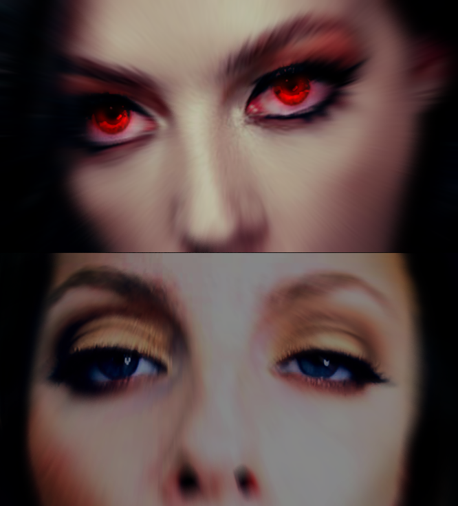 Then Elizabeth's eyes change color, to a bright demonic RED. Agatha tries not to look but she cannot help herself.