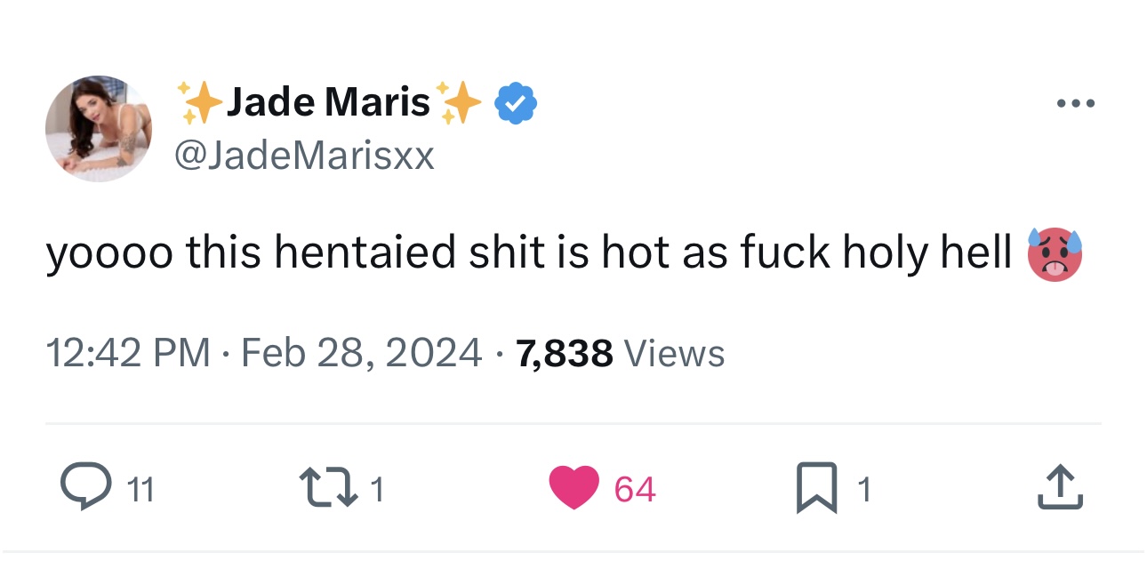 Jade is super hot and she likes Hentaied… Should be an easy booking! Hope this happens!