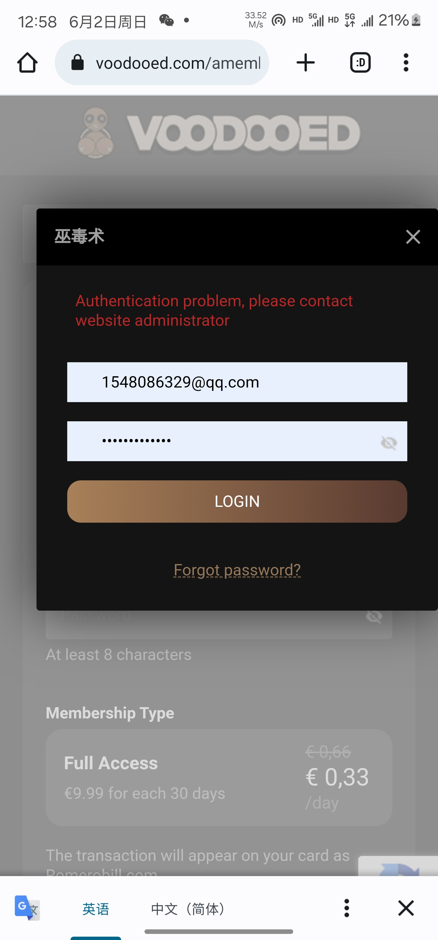 当我登录你们最新的网站时,出现了身份验证问题,请联系管理员