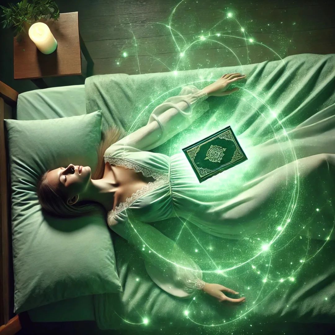 As the Green Flash fades, Rania lies back on her bed, a newfound feeling of calm and satisfaction settling over her. She catches her breath, the sensations gradually subsiding, leaving a deep sense of wonder. Opening her eyes, she sees the spellbook beside her, still glowing with a faint, pulsing green light.