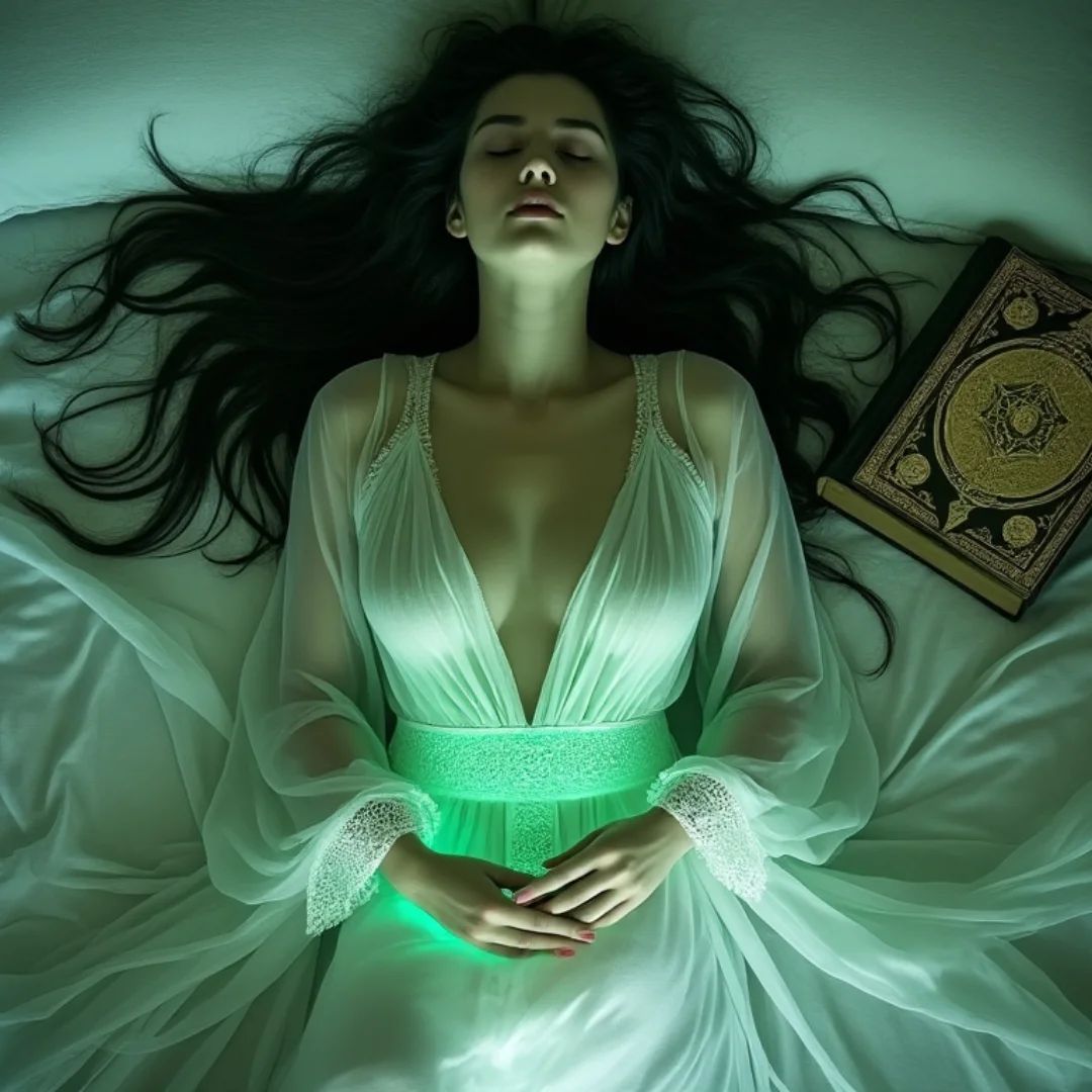 In the final scene of her awakening, Rania’s connection with the spellbook reaches its peak. She lies back, the spellbook resting beside her, emitting a soft, green glow that pulses in harmony with her heartbeat. With a final, whispered incantation, she triggers the ultimate transformation.
