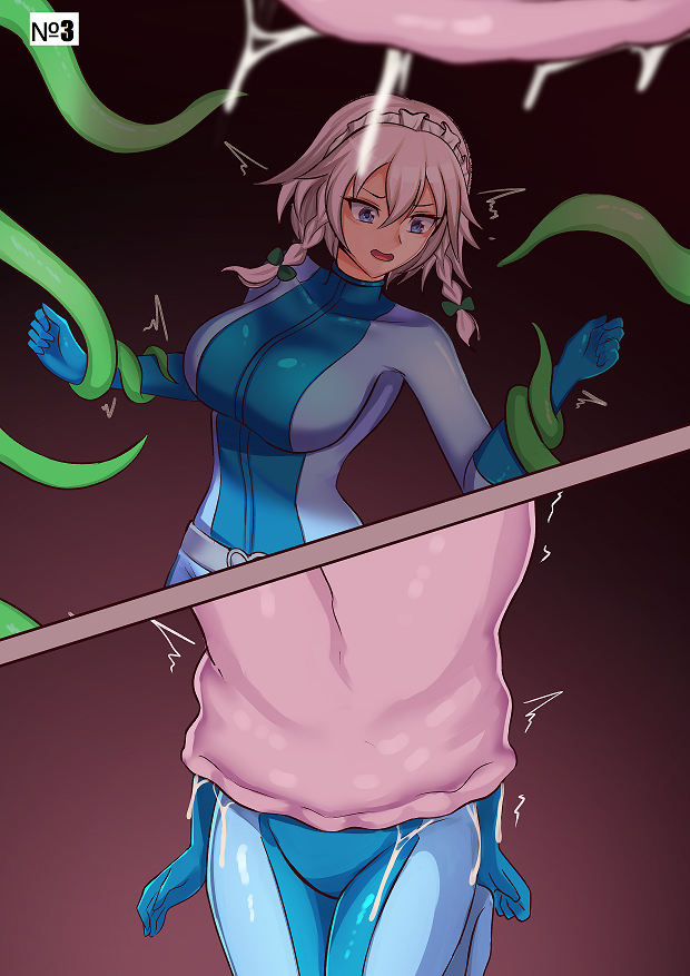 a spaceship or a station where aliens have infiltrated. All male personnel disappeared and the girls were trapped. Our heroine, in search of salvation, went to the escape capsule, but on the way, some creature pounced on her from the ceiling (maybe like Barnacle from Half-Life, but not a tongue attack, but immediately swallowed). And so we see the lower half of the victim, she fiercely resists, moves her legs and tries to slip out of the alien's mouth. The swallowed girl feels like the tongue of a monster begins to penetrate into her mouth, from which an aphrodisiac begins to emerge ... (see image №3)